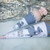 Im Fotobeispiel: Musselinhaube in silbergrau und gold,